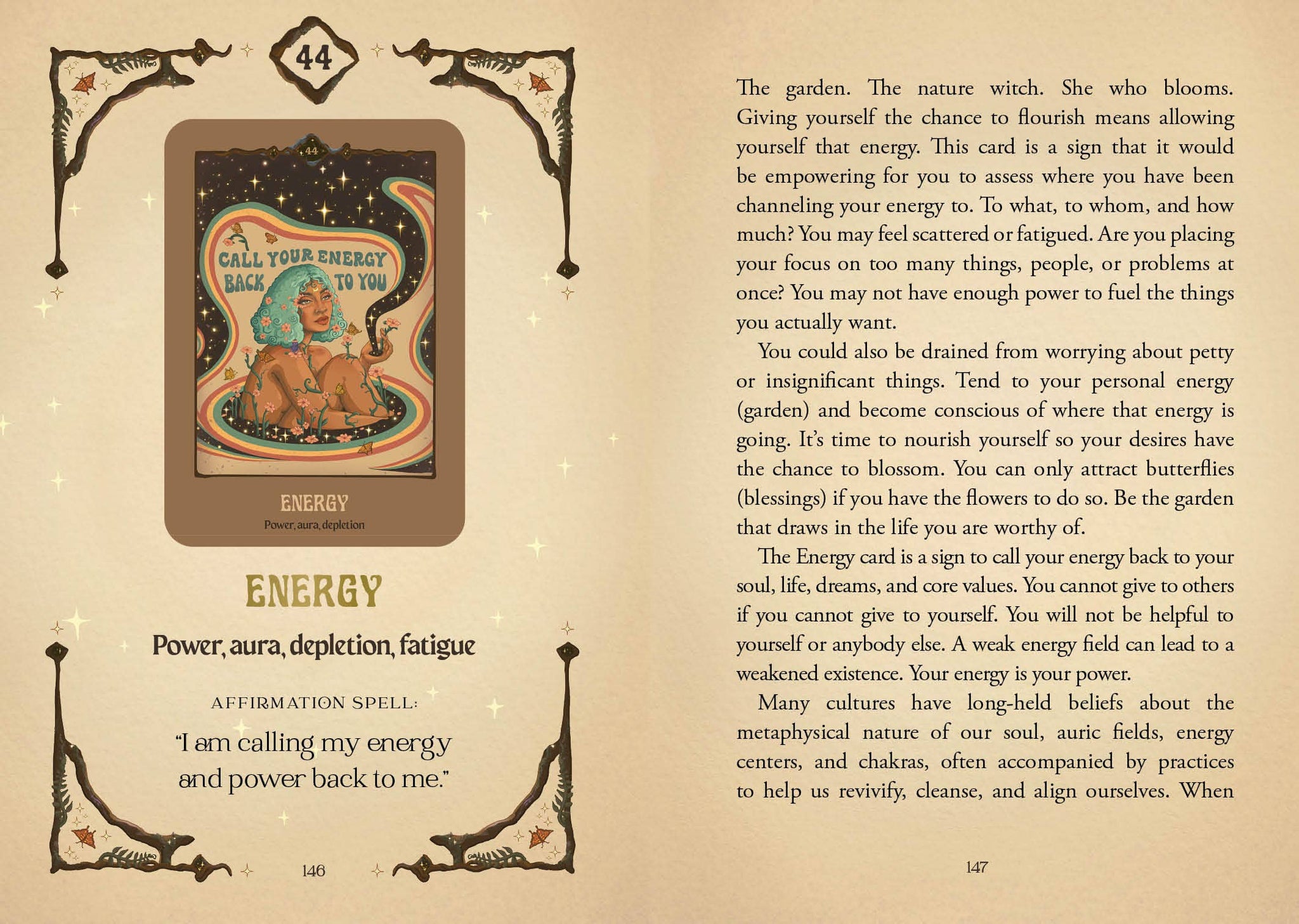 This enchanting oracle deck invites you on a storytelling adventure through witches, grandmother trees, ancient archetypes, and sparkling portals. Each card carries practical wisdom, rituals, and manifestation practices that you can weave into your daily life, along with an empowering affirmation spell to cast upon yourself.