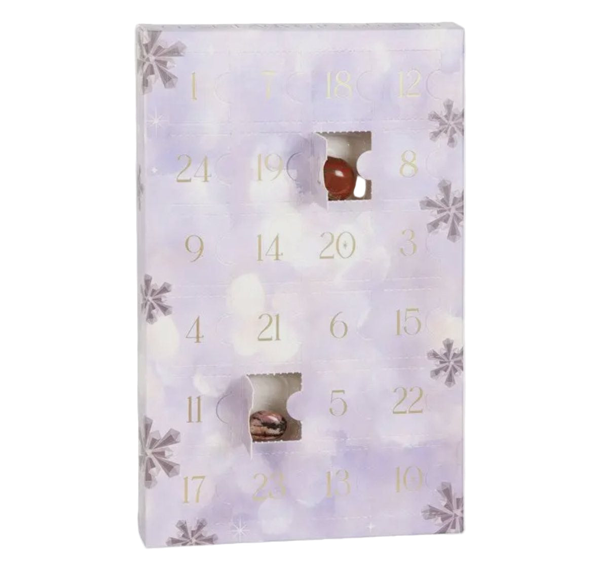 Behind every door lies a unique tumbled gemstone, carefully selected to inspire balance, positivity, and wonder throughout the festive season.