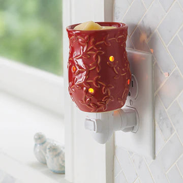 Spice up your space with the rich, vibrant look of the Cayenne Pluggable Warmer. Featuring a striking red reactive glaze over an elegant vine pattern, this ceramic warmer adds warmth, colour, and beautiful fragrance to any small room.
