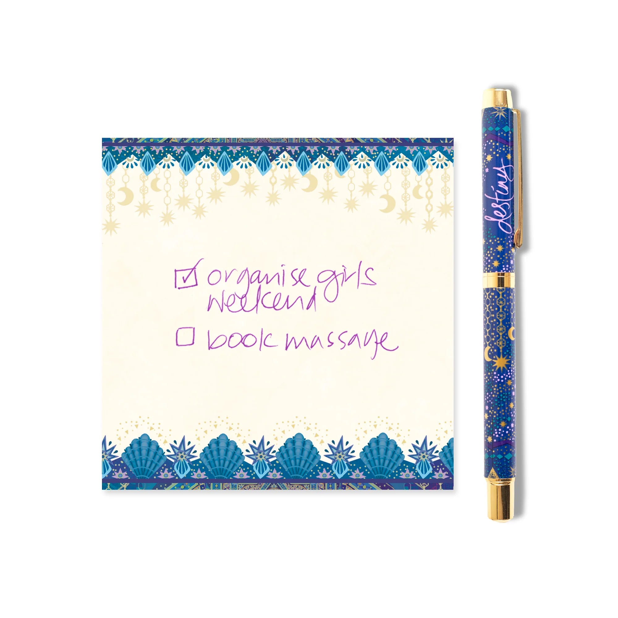 The beautifully designed box features a sparkling gold-foiled swing lid and holds individual sheets of blank notepaper, each adorned with astrology-inspired patterned borders. And once the paper runs out? You’re left with a stunning keepsake box—perfect for storing jewellery, knick-knacks, or treasured little finds.
