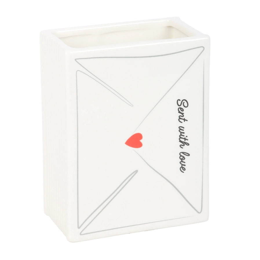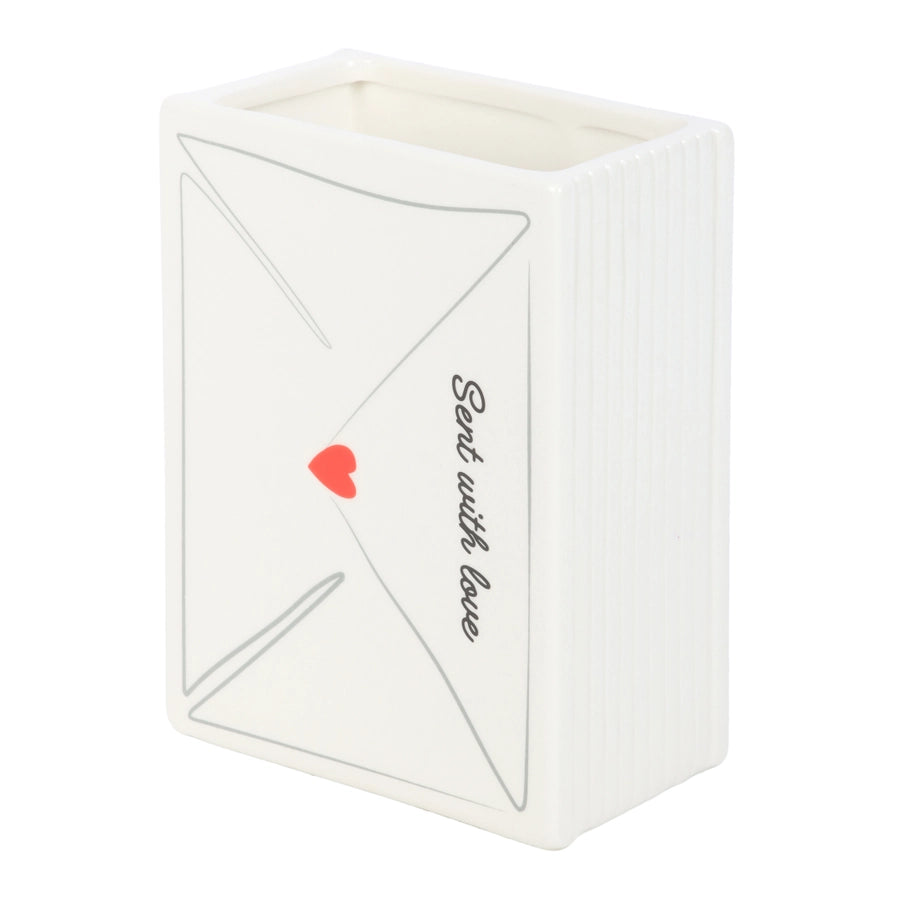 Inspired by timeless tales of romance and devotion, the Love Letter Ceramic Vase captures the magic of words written straight from the heart. Crafted to resemble a sealed envelope stamped with love, this charming piece is perfect for holding dried blooms, quills, or even bookmarks.