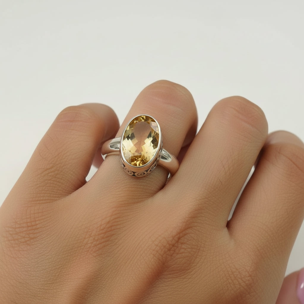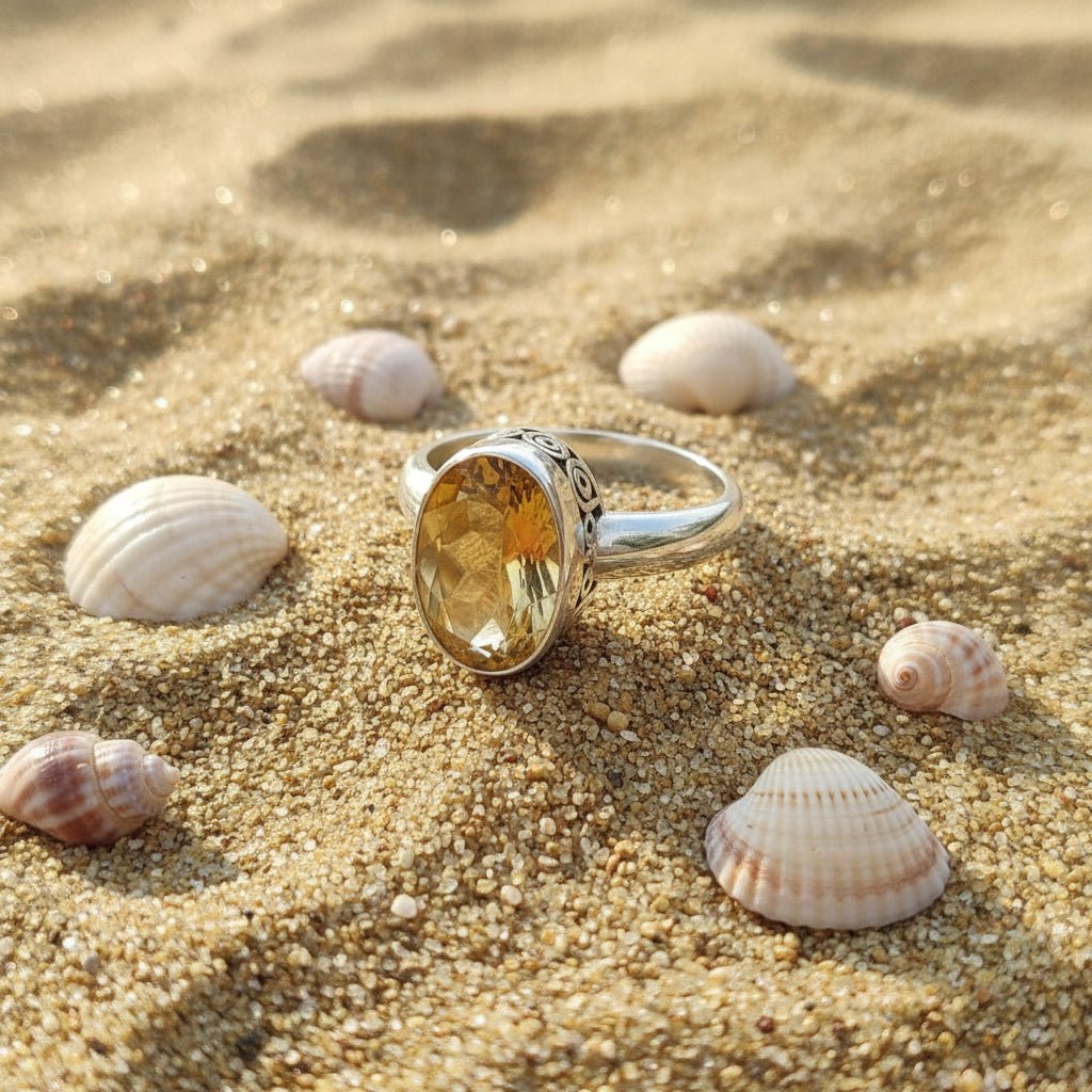 Radiating warmth and positivity, this stunning Citrine Ring is crafted from high-quality 925 sterling silver and features a beautifully faceted oval citrine gemstone.
